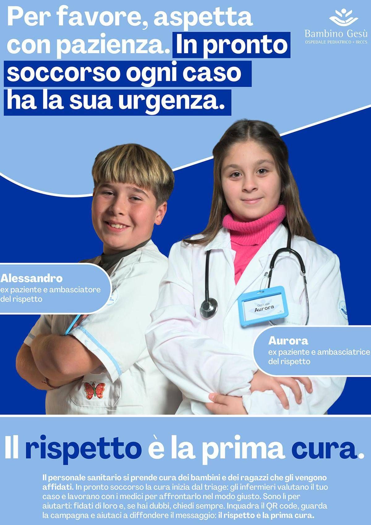 “Il cuore creativo della campagna, che verrà lanciata domani in occasione della Giornata nazionale di educazione e prevenzione contro la violenza su operatori sanitari e socio-sanitari, è un ribaltamento simbolico dei ruoli”, sottolineano dal Bambino Gesù: “Sono i piccoli pazienti a ricordare agli adulti le regole del rispetto”. Attraverso video e contenuti diffusi sia all’interno dell’ospedale sia sui canali social e digitali, Alessandro e Aurora – in camice da infermiere e dottoressa – spiegano con semplicità e un pizzico di ironia quanto i comportamenti corretti siano fondamentali per chi lavora e per chi è in cura.