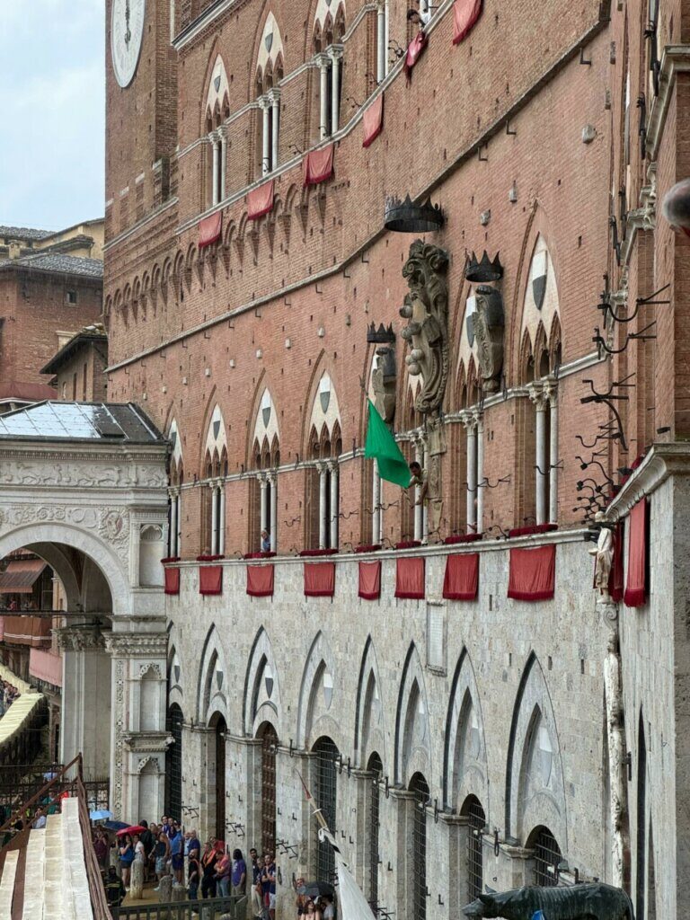 È stata esposta anche oggi (3 luglio) la bandiera verde alle trifore di Palazzo Pubblico di Siena: è stato, infatti, nuovamente rimandato il Palio, che si sarebbe dovuto disputare già ieri (2 luglio), a causa delle avverse condizioni del meteo.