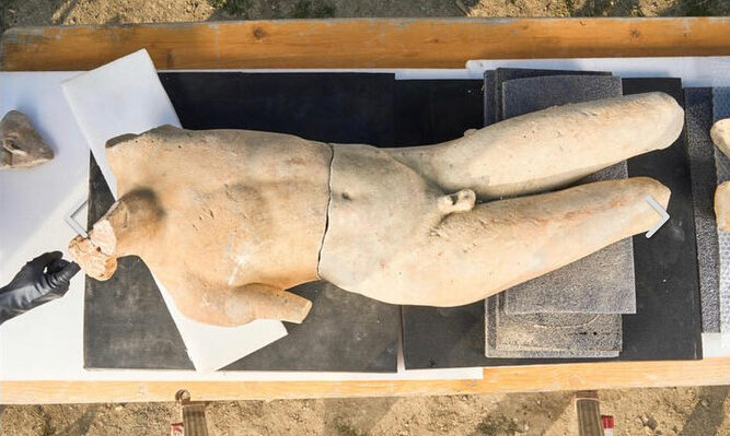 Una statua in marmo alta quasi due metri di un Apollo Sauroctonos, raffigurato giovanetto mentre caccia una lucertola, una copia romana di una statua in bronzo attribuita al leggendario scultore greco Prassitele. E poi un altare in travertino con una rarissima iscrizione bilingue in etrusco e latino e altri preziosi oggetti che illuminano sulle antiche credenze sulla cura degli occhi da parte della divinità. Sono queste alcune delle nuove meraviglie che sono riemersa dall’ultima campagna di scavo, conclusa il 14 ottobre scorso, dal Bagno Grande di San Casciano dei Bagni al termine di un’esplorazione archeologica durata oltre tre mesi.