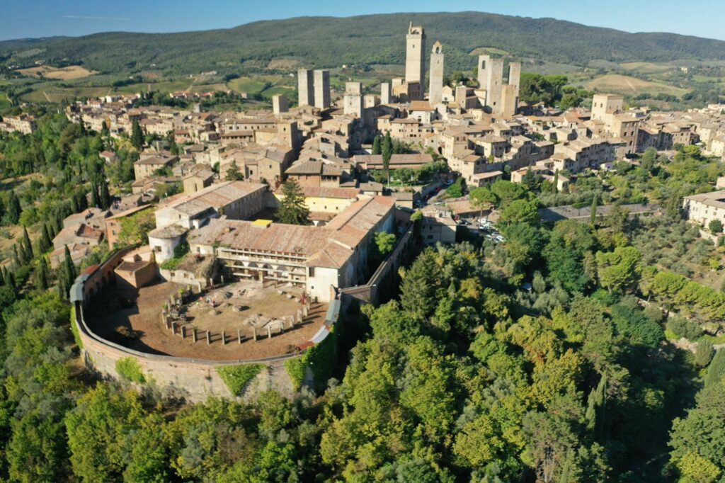 Il progetto prevede un’arena da mille posti a sedere per teatro e lirica al posto di quella che fu l’ora d’aria per i detenuti, un percorso panoramico per i visitatori da cui ammirare lo skyline di San Gimignano al posto del camminamento di ronda. Nuovi spazi pubblici per la collettività, una struttura ricettiva esperienziale con camere ricavate nelle ex celle del convento. E poi ancora un nuovo spazio museale, un’area convegni e spazi per ospitare botteghe artigianali locali, associazioni e gallerie multimediali.