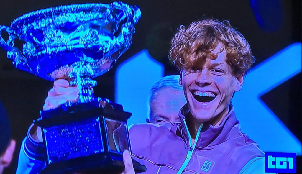 Jannik Sinner: “Avere questo trofeo accanto a me vuol dire veramente molto, mi fa pensare a tutto il lavoro fatto in questi anni. E’ un trofeo importante, non ce ne sono molti altri così importanti nel nostro sport. Sono felice di essere riuscito a dare questa gioia a tutte le persone che mi hanno seguito e più in generale a tutti quelli che mi hanno supportato in tutti questi anni”.