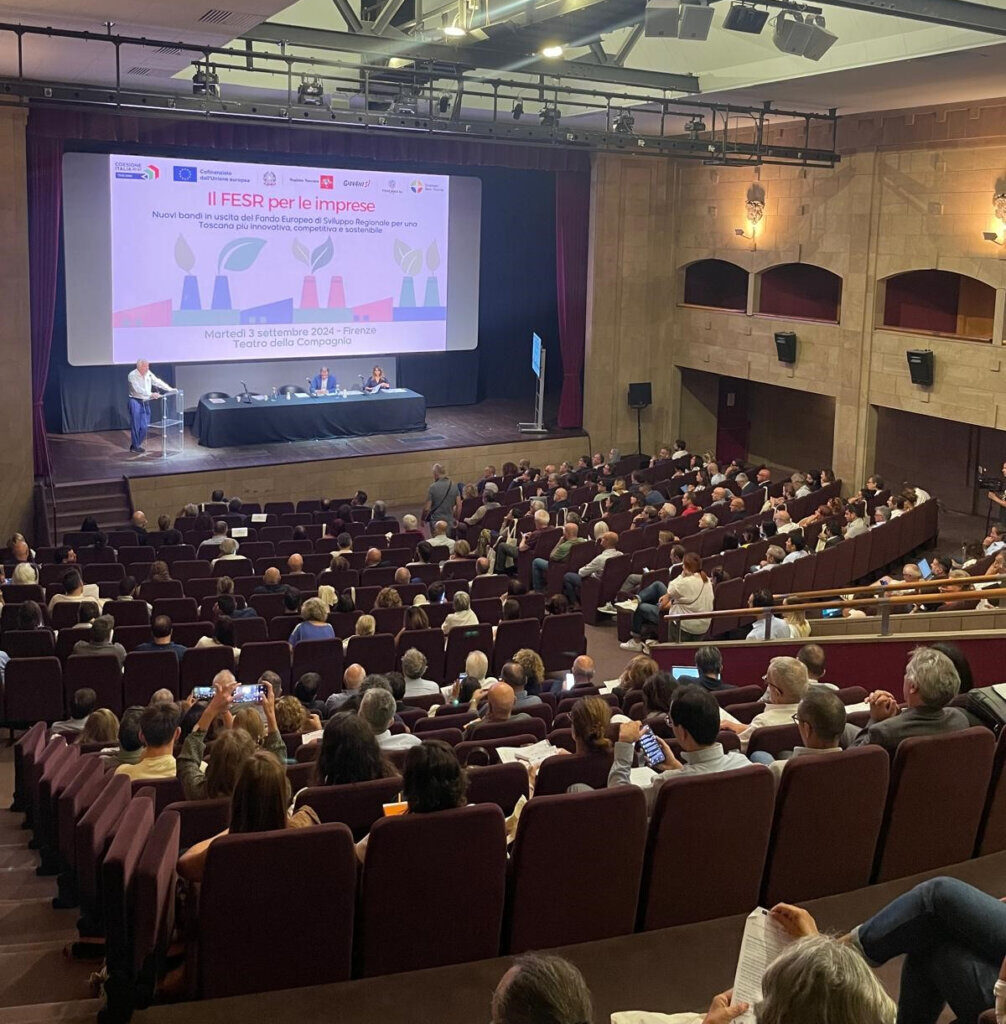 Il presidente interviene al Teatro della Compagnia a Firenze in occasione della presentazione di nuovi bandi del Fesr a sostegno delle imprese con i quali saranno messi a disposizione 103,7 milioni per lo sviluppo e la competitività dei territori e del sistema produttivo, che si aggiungono ai 34 milioni che sono a disposizione per bandi già pubblicati e tuttora aperti (impresa digitale e sostenibile e fondo di garanzia per le pmi). A moderare l’incontro Paolo Tedeschi, direttore per la competitività territoriale della Toscana e autorità di gestione, assieme appunto all’autorità di gestione del Fesr e con i contributi della Direzione attività produttive e della Direzione ambiente ed energia.